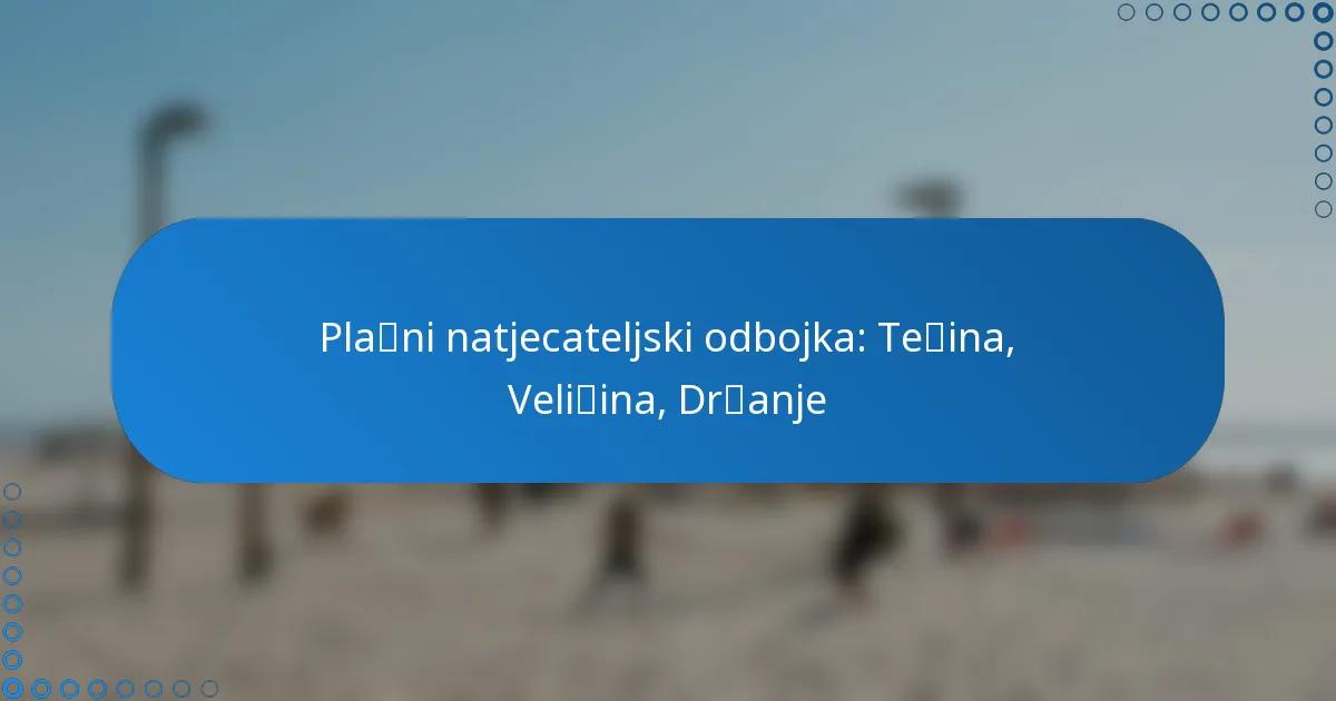 U odbojci na plaži, standardna težina lopti kreće se od 260 do 280 grama, što je ključno za optimalne performanse. Ove odbojkaške lopte također moraju ispunjavati specifične propise o veličini, obično mjereći od 65 do 67 centimetara u promjeru. Osim toga, hvat odbojke na plaži igra ključnu ulogu u igri, poboljšavajući kontrolu lopte i rukovanje, posebno u pješčanim uvjetima.