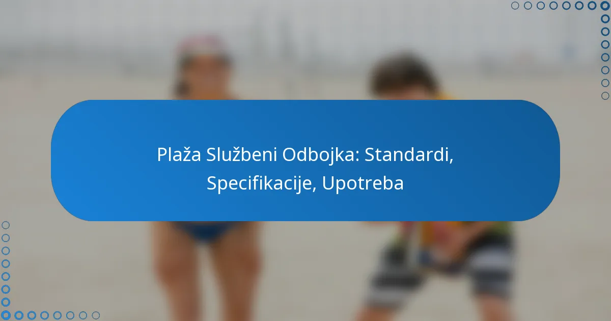 Službeni standardi za odbojku na plaži uspostavljeni su kako bi se osigurala dosljednost i pravednost u natjecateljskoj igri. Ovi standardi pokrivaju različite aspekte, uključujući veličinu, težinu, materijale i dizajnerske značajke, a reguliraju ih priznate institucije u sportu.