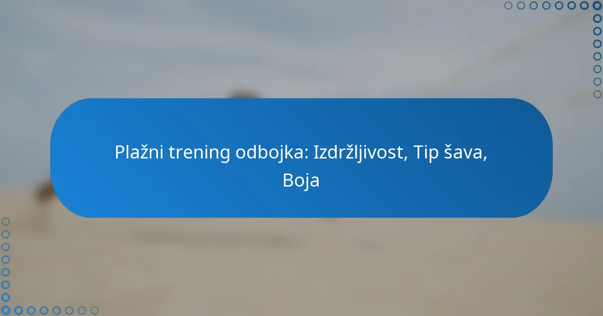 Odabir prave odbojke za trening na plaži uključuje razmatranje čimbenika kao što su izdržljivost, tip šava i opcije boja. Ovi elementi značajno utječu na performanse i dugovječnost, što čini bitnim odabrati odbojku koja zadovoljava vaše potrebe treninga.