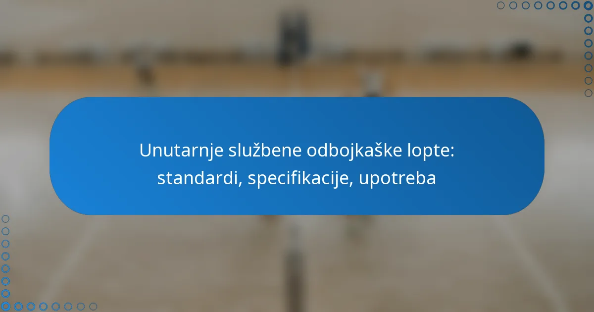 Unutarnje odbojkaške lopte dizajnirane su s određenim standardima i specifikacijama koje utječu na njihovu izvedbu i prikladnost za igru. Ključne specifikacije uključuju veličinu, težinu, materijal i metode izrade, a sve to utječe na to kako se lopta ponaša tijekom utakmice.